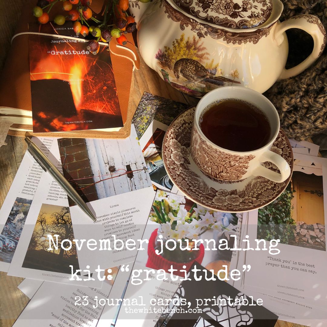 - November journaling kit, with writing prompts for the whole month of November. This kit is all about GRATITUDE! Written by me, and illustrated with my own original photography from my life in England.